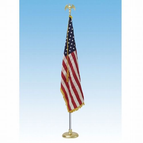 Save American Flag Presentation Set 8 Ft Pole with 3' x 5' Gold Fringed Nylon U.S. Flag, Eagle Top, Cord & Tassels and Stand Included